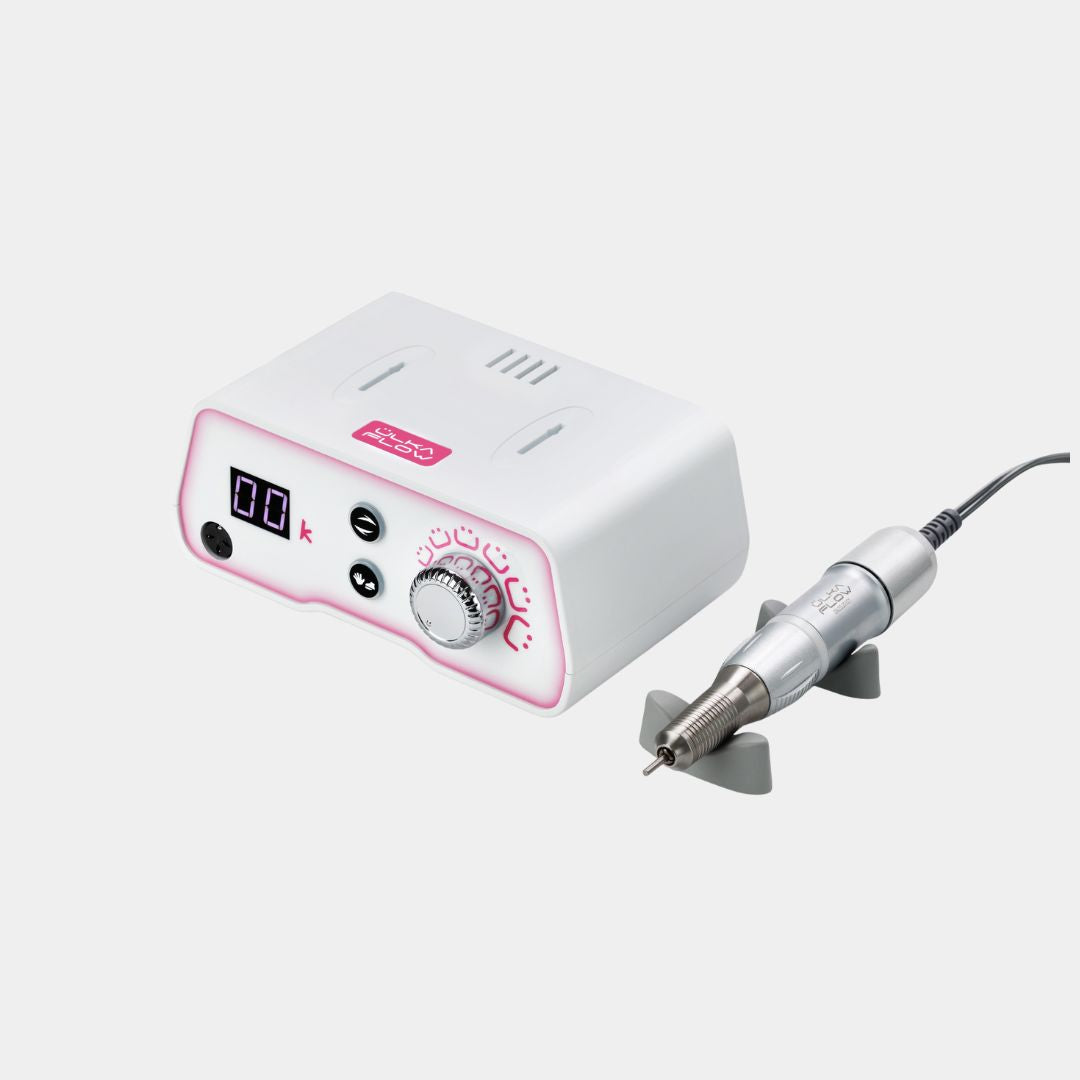 ÜLKA FLOW to urządzenie stworzone do intensywnej pracy salonowej. System 2 w 1 łączy sterowanie ręczne z czułym pedałem nożnym, co pozwala na płynną i intuicyjną regulację prędkości bez odrywania rąk od klientki.